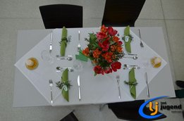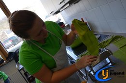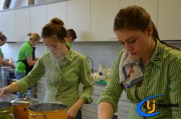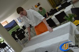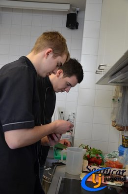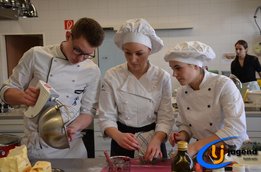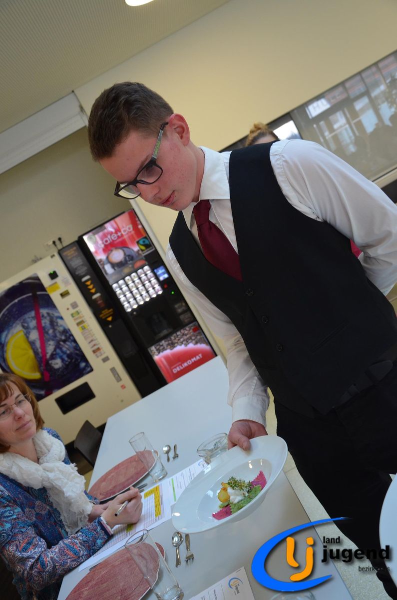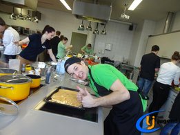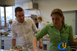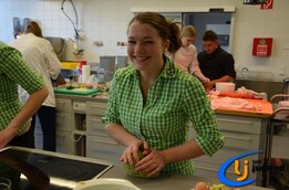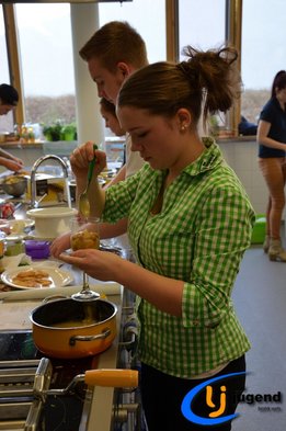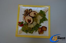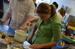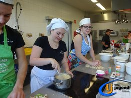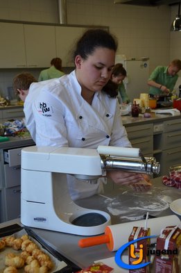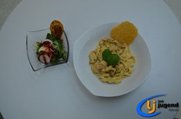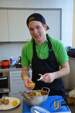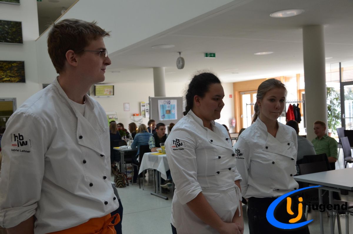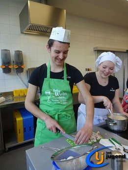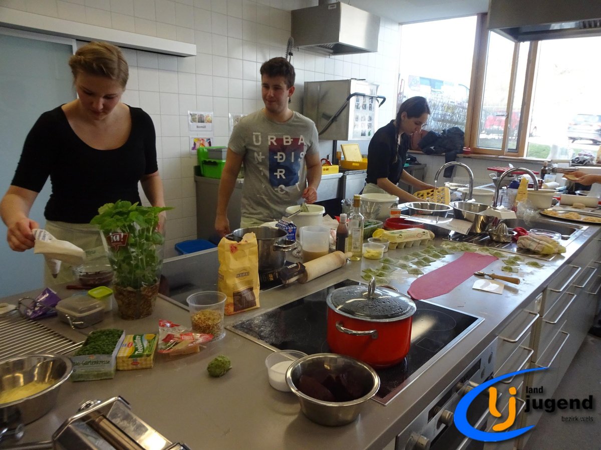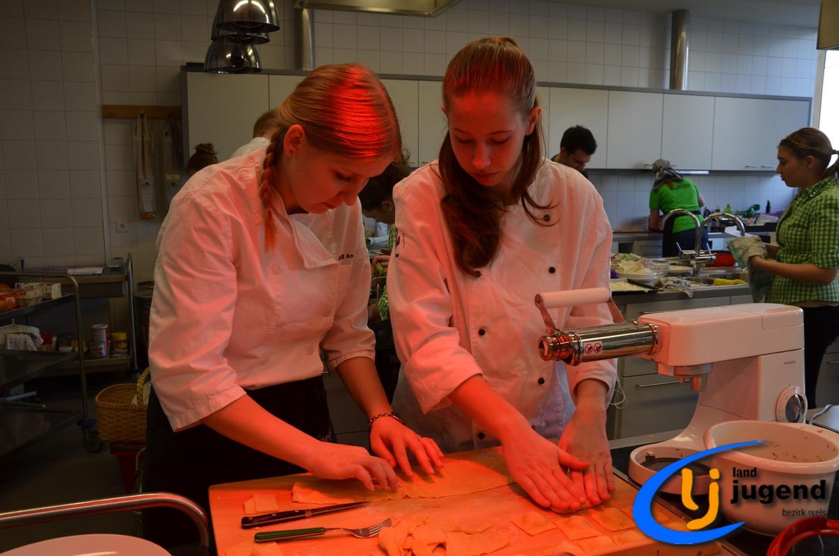 Passend zum Jahresthema „Gemeinsam Vielfalt erleben“ bereiteten die elf Teams ein Hauptgericht zu. Gerichte wie „Tortellini mit Bärlauch-Käse Fülle“ oder „Bandnudeln mit Hühnerfleisch in cremiger Zitronensauce“ sorgten bei der Jury für Gaumenfreuden. Zusätzlich zum Hauptgang musste ein Dessert zubereitet werden. Auch Kriterien wie Teamwork, Hygiene und die Sauberkeit des Arbeitsplatzes wurden von den Jurypersonen bei der Beurteilung berücksichtigt. Für einen Platz ganz vorne war auch noch Kreativität gefragt. Während zwei Personen des Dreierteams mit dem Kochen begannen, galt es für den dritten Teilnehmer einen Präsentationstisch passend zum jeweiligen Gericht zu dekorieren. Ebenfalls musste ein kleines Quizz über Italien absolviert werden. Dass in der Küche nicht immer alles nach Plan läuft bekamen unsere Teams zu spüren. Am Beginn des Bewerbes wurden die Teilnehmer mit einer Extrazutat konfrontiert. In einem der beiden Gerichte musste eine Kartoffel eingearbeitet werden. Doch das war noch nicht alles. Ein Teil des Quizzes war es, eine Geschichte über die Extrazutat zu schreiben.