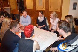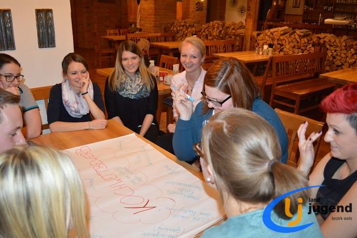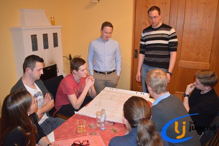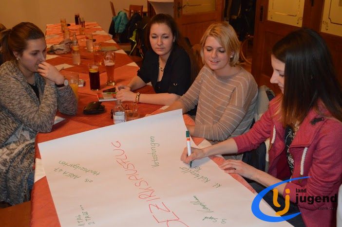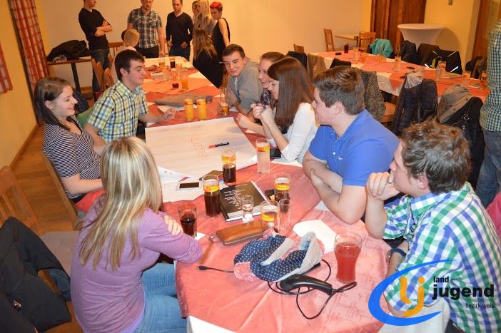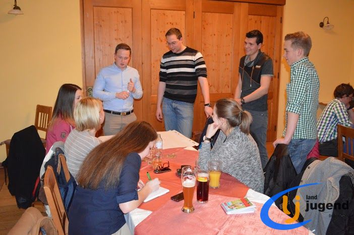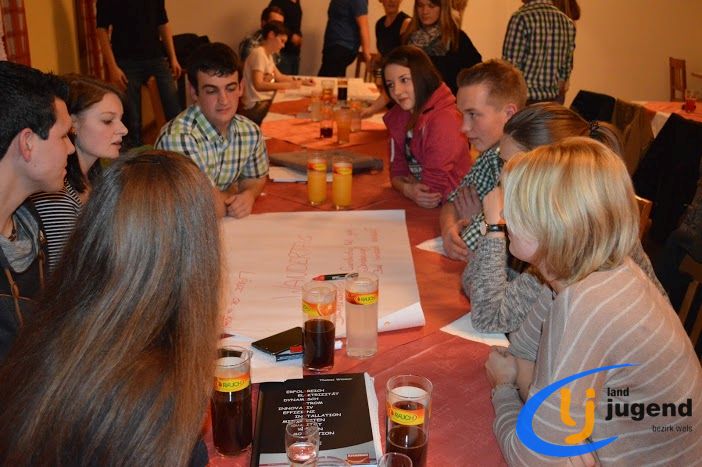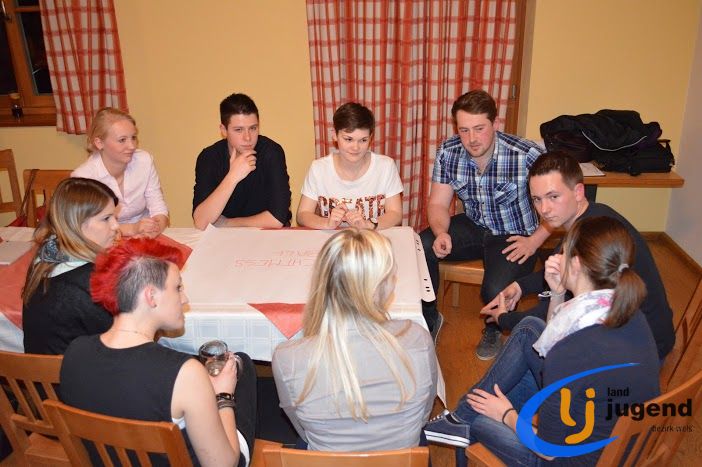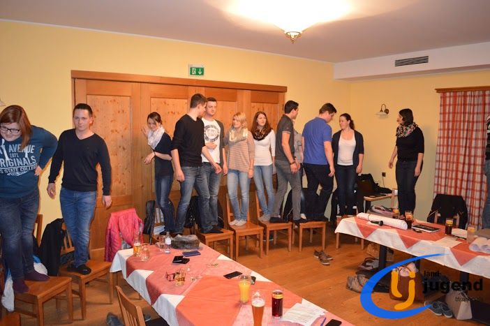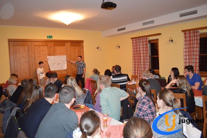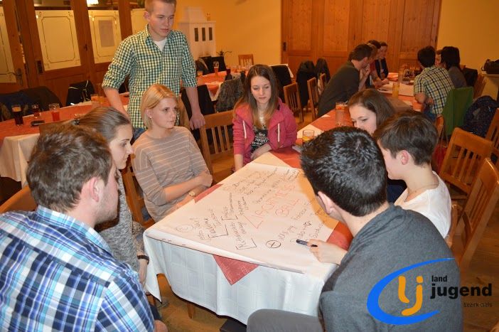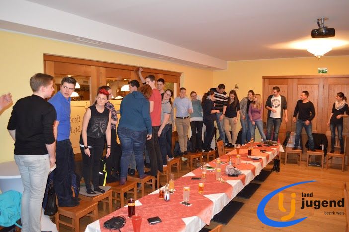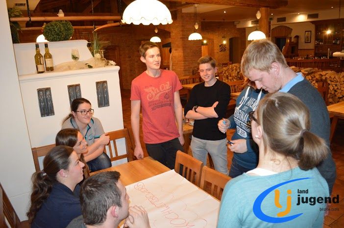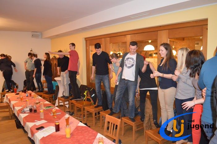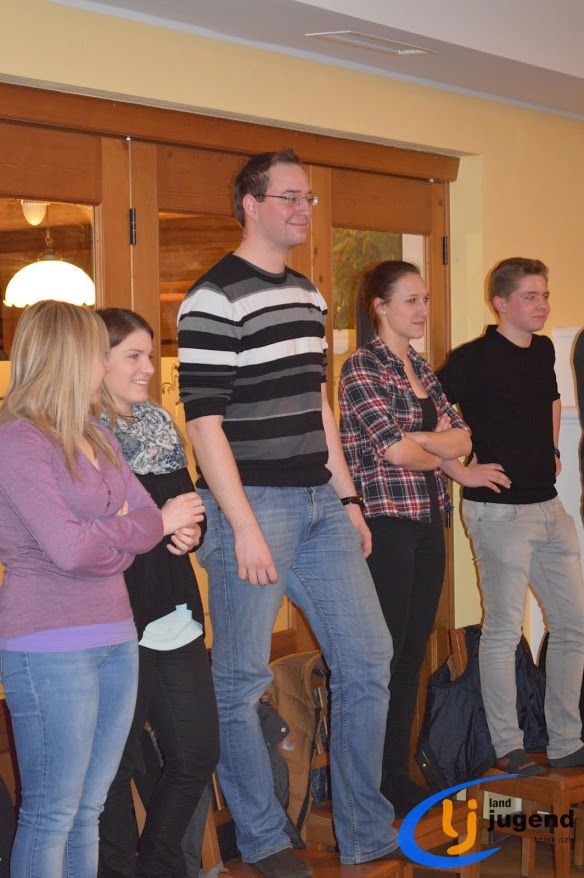 LeiLei was ist das? LeiLei ist die Abkürzung für Leiter und Leiterin. Für eine funktionierende Kommunikation und gemeinsame Weiterentwicklung treffen sich VertreterInnen der Landjugend auf Orts-, Bezirks- und Landesebene in regelmäßigen Abständen. In unserem Fall kommen Leiter und Leiterinnen aller 18 Ortsgruppen mit dem Bezirksvorstand zusammen, um sich auszutauschen und gemeinsam die wichtigsten Veranstaltungen zu planen. Begonnen wird die Versammlung mit einem Kennenlernspiel. Höhenangst durften dabei unsere LeiLeis nicht haben! Ohne den Boden zu berühren mussten sich die Ortsgruppenleitungen auf den Sesseln nach alphabetischer Reihenfolge der Vor- und Nachnamen, der Größe oder dem Alter reihen. Im Vordergrund stehen die Bewerbsvergabe für das aktuelle Landjugendjahr und der persönliche Austausch. Verbesserungsvorschläge, Wünsche und Anregungen für den Liachtmessball, LJ-Ausflug, Wandertag und den Kochwettbewerb gesammelt sammelten wir beim Stationenbetrieb.