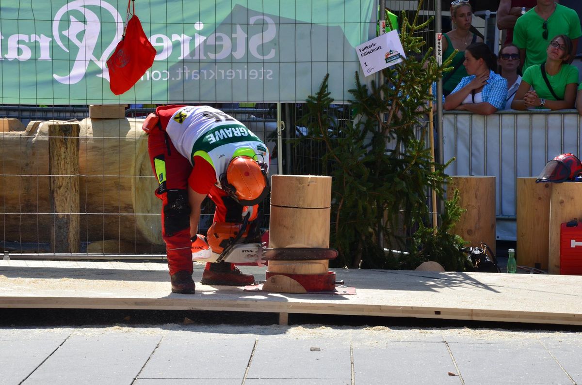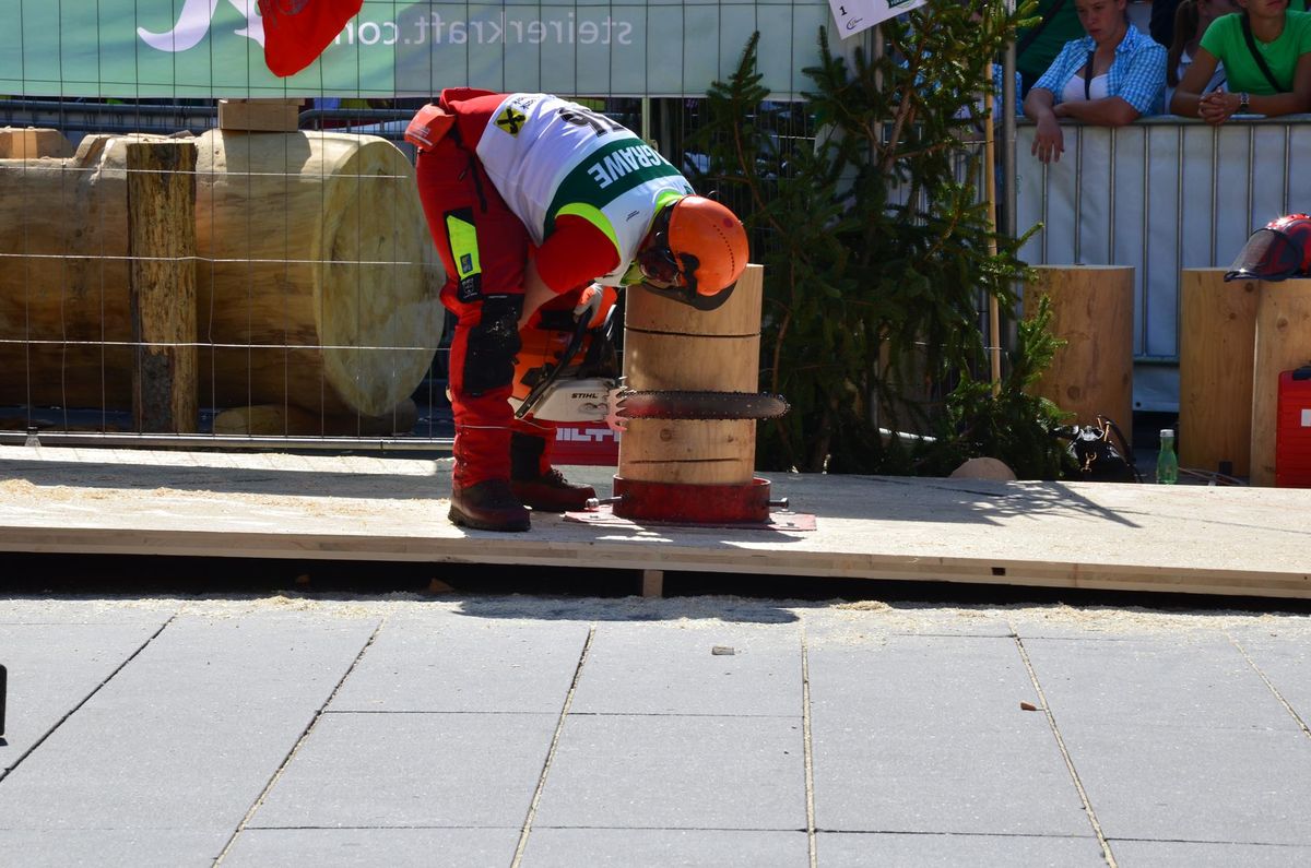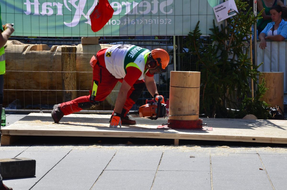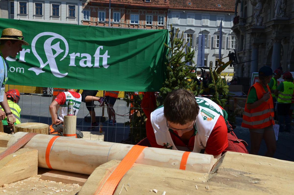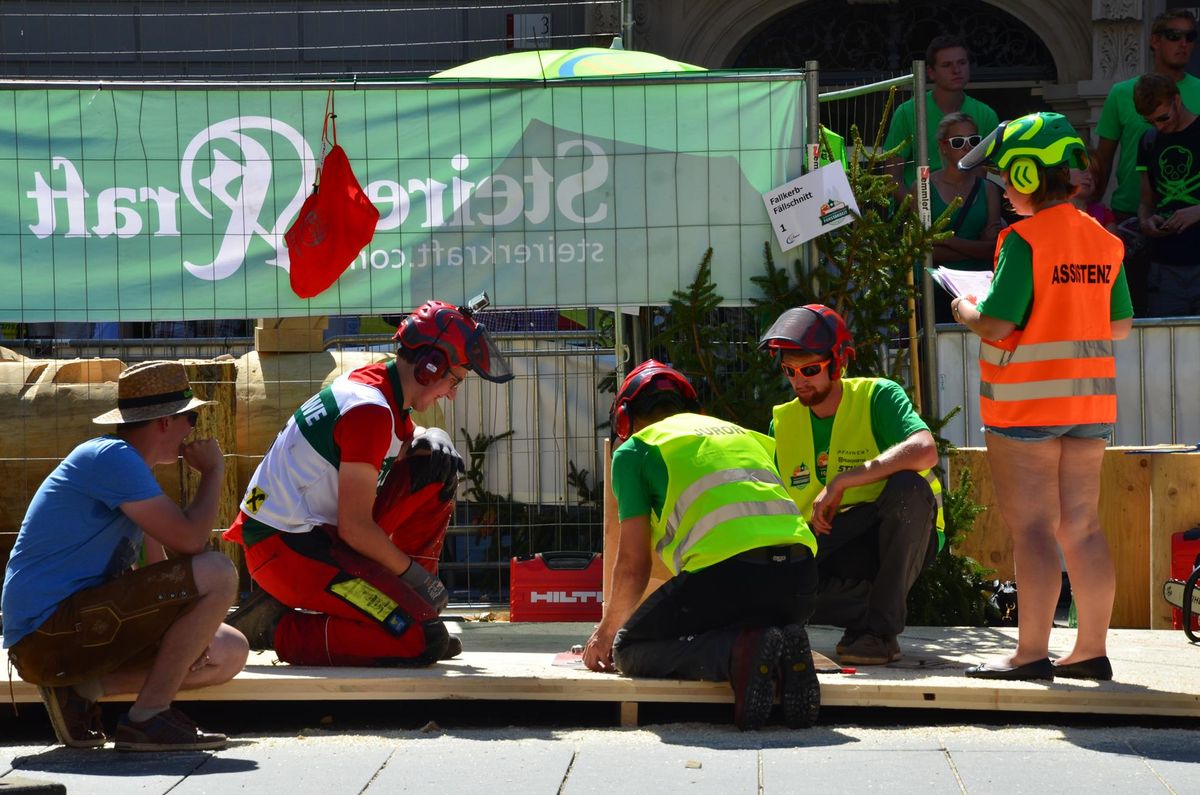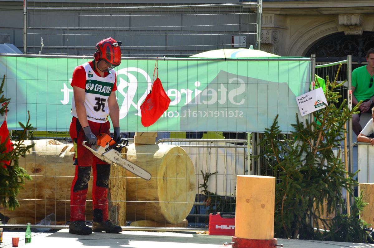Nach Innsbruck (2011) und Deutsch-Griffen (2013) durfte ich auch heuer wieder Oberösterreich beim Bundesentscheid der Forstarbeit am Grazer Hauptplatz vertreten. Zur Routine werden die Wettkämpfe, sei es auf Bezirks-, Landes- und Bundesebeneaber nie. Für die Forstarbeit braucht man nicht nur Kraft und Ausdauer. Schnell und sauber arbeiteten darauf kommt es an. Ist am Bewerbstag noch das berühmte Quäntchen Glück dabei, dann ist man bestens für den Bundesentscheid gerüstet. Natürlich geht ohne hartem Training nichts, um mit den Teilnehmern aus Kärnten, Tirol oder der Steiermark mithalten zu können. Die meisten Starter aus diesen Bundesländern besuchen Schulen wie die LFS Litzlhof, in denen sie auf derartige Wettkämpfe bestens vorbereitet werden. Heuer kam ich nur drei Wochen zuvor zum Trainieren. Dazu kam die drückende Hitze am Hauptplatz, wodurch alles noch anstrengender wurde. Deshalb bin ich besonders stolz auf meine erzielten Leistungen. Der erste Platz in der Disziplin Kombinationsschnitt und der zweite im Durchhacken sind ein krönender Abschluss der diesjährigen Bewerbssaison. Das Gefühl einmal ganz oben zu stehen und zu wissen, dass man im Verhältnis zum anderen weniger dafür gemacht hat, wird mir noch lange in Gedanken bleiben. Aber auch der Jubel des eigens angereisten Fanclubs und der "Konkurrenz" aus dem eigenen Bundesland machten den kurzen Moment unvergesslich. In zwei Jahren finden die nächsten Meisterschaften statt. Da möchte ich noch ein letztes Mal mitmachen und fehlerfrei alle Stationen meistern, um einmal ganz vorne zu sein. Ein Bericht von Peter Strassmair, LJ Thalheim. Er erreichte in der Gesamtwertung den 17. Platz. Nicht zu vergessen ist Georg Strauss aus Neukirchen. Georg durfte als vierter Oberösterreicher beim Bundesentscheid antreten. Als Newcomer darf er besonders stolz auf seine Leistung sein. Er erreichte den 22. Platz in der Landjugendwertung. -> Ergebnisliste Einzelwertung -> Ergebnisliste Disziplinenwertung -> Ergebnisliste Gruppenwertung -> Fotos LJ OÖ -> Fotos Theoriebewerb -> Fotos Bewerb -> Fotos Finale -> Fotos Siegerehrung