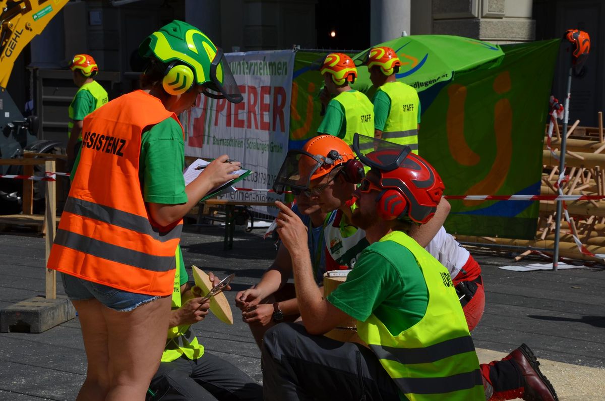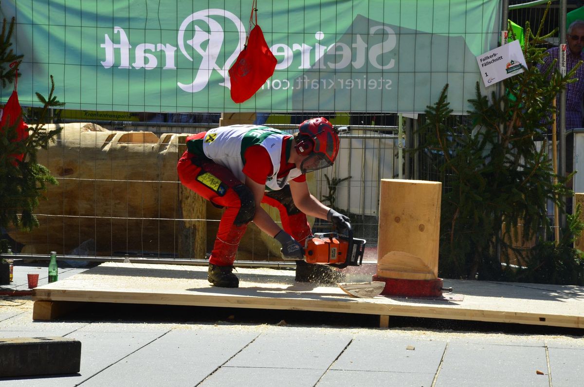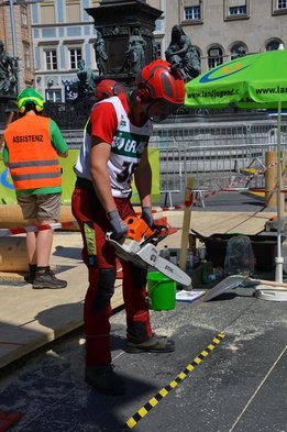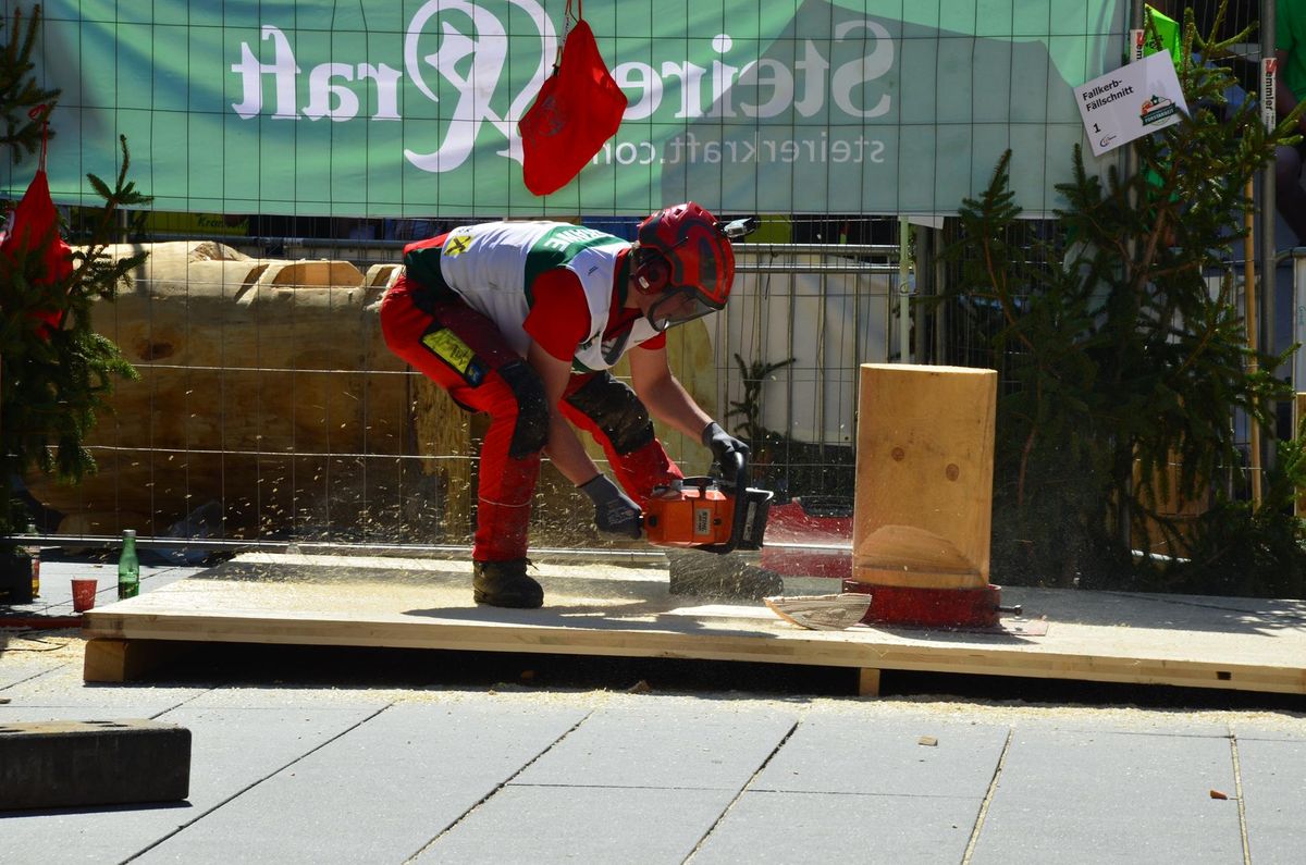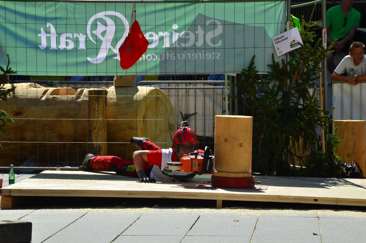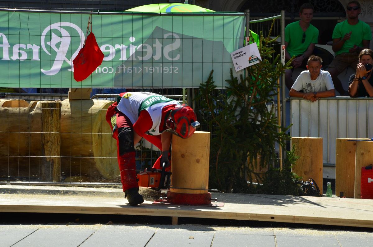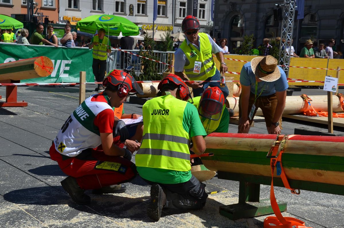 Nach Innsbruck (2011) und Deutsch-Griffen (2013) durfte ich auch heuer wieder Oberösterreich beim Bundesentscheid der Forstarbeit am Grazer Hauptplatz vertreten. Zur Routine werden die Wettkämpfe, sei es auf Bezirks-, Landes- und Bundesebeneaber nie. Für die Forstarbeit braucht man nicht nur Kraft und Ausdauer. Schnell und sauber arbeiteten darauf kommt es an. Ist am Bewerbstag noch das berühmte Quäntchen Glück dabei, dann ist man bestens für den Bundesentscheid gerüstet. Natürlich geht ohne hartem Training nichts, um mit den Teilnehmern aus Kärnten, Tirol oder der Steiermark mithalten zu können. Die meisten Starter aus diesen Bundesländern besuchen Schulen wie die LFS Litzlhof, in denen sie auf derartige Wettkämpfe bestens vorbereitet werden. Heuer kam ich nur drei Wochen zuvor zum Trainieren. Dazu kam die drückende Hitze am Hauptplatz, wodurch alles noch anstrengender wurde. Deshalb bin ich besonders stolz auf meine erzielten Leistungen. Der erste Platz in der Disziplin Kombinationsschnitt und der zweite im Durchhacken sind ein krönender Abschluss der diesjährigen Bewerbssaison. Das Gefühl einmal ganz oben zu stehen und zu wissen, dass man im Verhältnis zum anderen weniger dafür gemacht hat, wird mir noch lange in Gedanken bleiben. Aber auch der Jubel des eigens angereisten Fanclubs und der "Konkurrenz" aus dem eigenen Bundesland machten den kurzen Moment unvergesslich. In zwei Jahren finden die nächsten Meisterschaften statt. Da möchte ich noch ein letztes Mal mitmachen und fehlerfrei alle Stationen meistern, um einmal ganz vorne zu sein. Ein Bericht von Peter Strassmair, LJ Thalheim. Er erreichte in der Gesamtwertung den 17. Platz. Nicht zu vergessen ist Georg Strauss aus Neukirchen. Georg durfte als vierter Oberösterreicher beim Bundesentscheid antreten. Als Newcomer darf er besonders stolz auf seine Leistung sein. Er erreichte den 22. Platz in der Landjugendwertung. -> Ergebnisliste Einzelwertung -> Ergebnisliste Disziplinenwertung -> Ergebnisliste Gruppenwertung -> Fotos LJ OÖ -> Fotos Theoriebewerb -> Fotos Bewerb -> Fotos Finale -> Fotos Siegerehrung