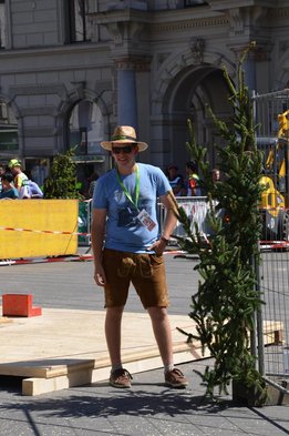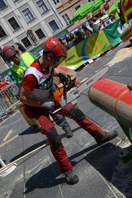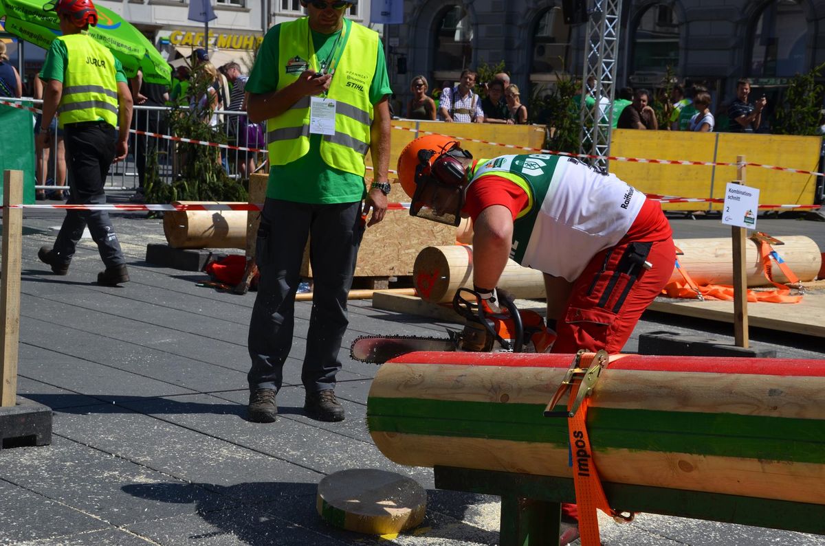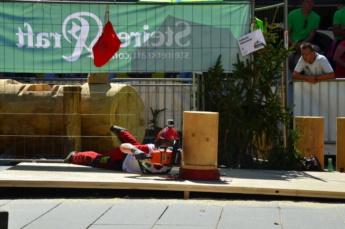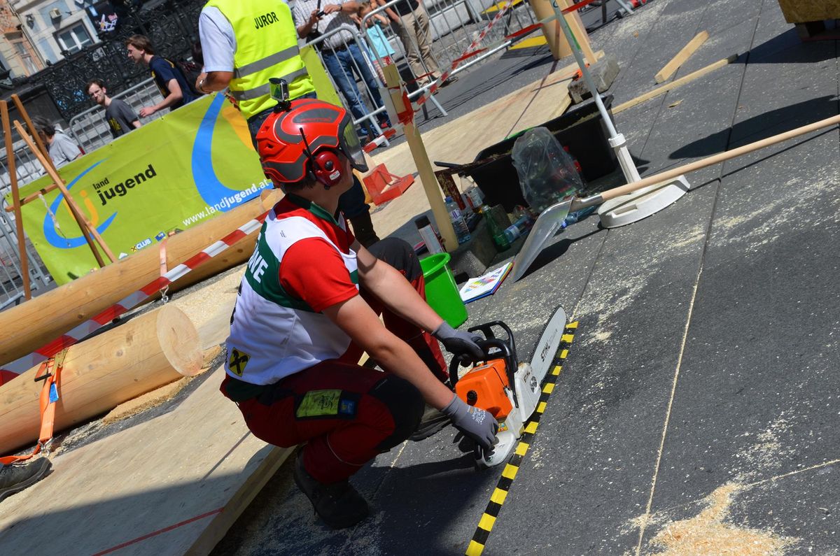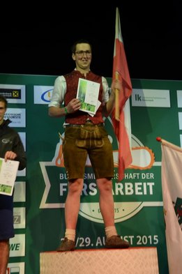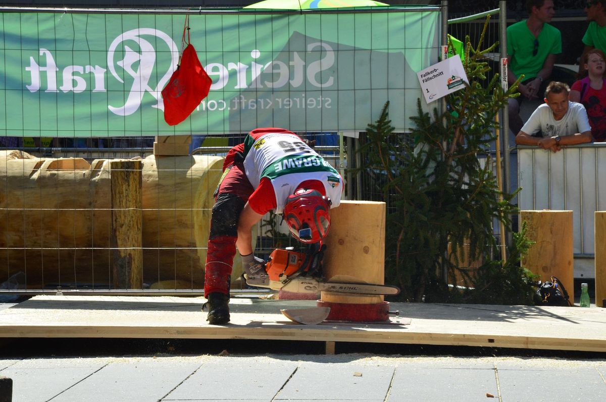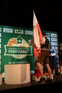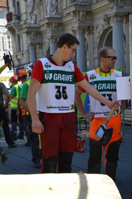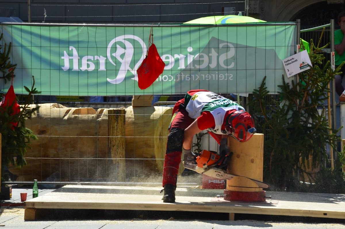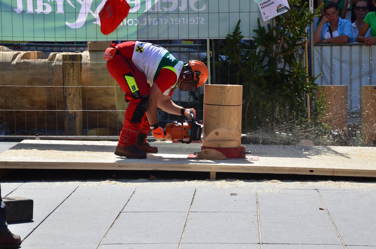 Nach Innsbruck (2011) und Deutsch-Griffen (2013) durfte ich auch heuer wieder Oberösterreich beim Bundesentscheid der Forstarbeit am Grazer Hauptplatz vertreten. Zur Routine werden die Wettkämpfe, sei es auf Bezirks-, Landes- und Bundesebeneaber nie. Für die Forstarbeit braucht man nicht nur Kraft und Ausdauer. Schnell und sauber arbeiteten darauf kommt es an. Ist am Bewerbstag noch das berühmte Quäntchen Glück dabei, dann ist man bestens für den Bundesentscheid gerüstet. Natürlich geht ohne hartem Training nichts, um mit den Teilnehmern aus Kärnten, Tirol oder der Steiermark mithalten zu können. Die meisten Starter aus diesen Bundesländern besuchen Schulen wie die LFS Litzlhof, in denen sie auf derartige Wettkämpfe bestens vorbereitet werden. Heuer kam ich nur drei Wochen zuvor zum Trainieren. Dazu kam die drückende Hitze am Hauptplatz, wodurch alles noch anstrengender wurde. Deshalb bin ich besonders stolz auf meine erzielten Leistungen. Der erste Platz in der Disziplin Kombinationsschnitt und der zweite im Durchhacken sind ein krönender Abschluss der diesjährigen Bewerbssaison. Das Gefühl einmal ganz oben zu stehen und zu wissen, dass man im Verhältnis zum anderen weniger dafür gemacht hat, wird mir noch lange in Gedanken bleiben. Aber auch der Jubel des eigens angereisten Fanclubs und der "Konkurrenz" aus dem eigenen Bundesland machten den kurzen Moment unvergesslich. In zwei Jahren finden die nächsten Meisterschaften statt. Da möchte ich noch ein letztes Mal mitmachen und fehlerfrei alle Stationen meistern, um einmal ganz vorne zu sein. Ein Bericht von Peter Strassmair, LJ Thalheim. Er erreichte in der Gesamtwertung den 17. Platz. Nicht zu vergessen ist Georg Strauss aus Neukirchen. Georg durfte als vierter Oberösterreicher beim Bundesentscheid antreten. Als Newcomer darf er besonders stolz auf seine Leistung sein. Er erreichte den 22. Platz in der Landjugendwertung. -> Ergebnisliste Einzelwertung -> Ergebnisliste Disziplinenwertung -> Ergebnisliste Gruppenwertung -> Fotos LJ OÖ -> Fotos Theoriebewerb -> Fotos Bewerb -> Fotos Finale -> Fotos Siegerehrung