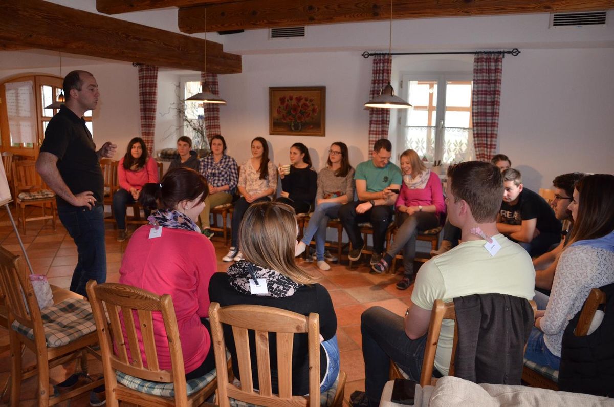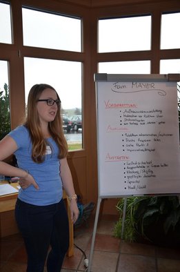 Am Freitagabend starteten wir mit dem Landesbeitrag, präsentiert von Harald Hofstätter und Stefanie Schauer. Erstaunliche Details kamen beim Kennenlernspiel zu Tage. Drei Personen aus unserer Runde gaben zu 50 shades of grey als Vorbild zu haben. Zwei weitere leben mit dem Motto "Liebe vergeht, Hektar besteht" und einer hat zwar ein Smartphone, verzichtet aber auf WhatsApp.